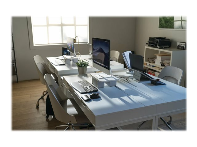 Grâce au rehausseur ergonomique et refroidissant Easy Riser Go avec SmartFit de Kensington , vous pouvez régler la hauteur de votre écran tout en profitant d'une meilleure circulation de l'air. Doté d'un design 2-en-1 élégant, il permet d'ajuster la hauteur et l'inclinaison afin d'améliorer la posture, la position du regard et le confort des épaules et du cou, tout en s'assurant que les composants internes de l'ordinateur portable ne surchauffent pas. Ses patins antidérapants empêchent tout glissement, ses parties rembourrées maintiennent votre appareil en place, et son design pliable facilite le transport. S'utilise avec un clavier et une souris externes (vendus séparément). Ce produit est compatible avec les ordinateurs portables standard et de gaming 17".