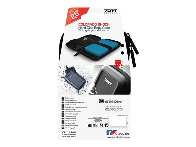 La Colorado Shock est une housse rigide dédiée à la protection de votre disque dur de 2.5'' (avec une dimension standardisée, la Colorado Shock sera compatible avec la plus grande majorité des disques durs externes vendus dans le commerce). La matière principale de cet étui est de l'EVA, un plastique robuste qui résistera aux chocs les plus violents.
