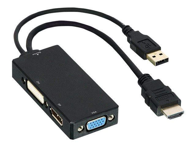 HDMI mâle pour HD-15 (VGA), DVI, DisplayPort femelle - 15 cm - noir - support 1 200 p 60 Hz (VGA), support 1 080 p 60 Hz (DVI), support 4K 30 Hz (DisplayPort)