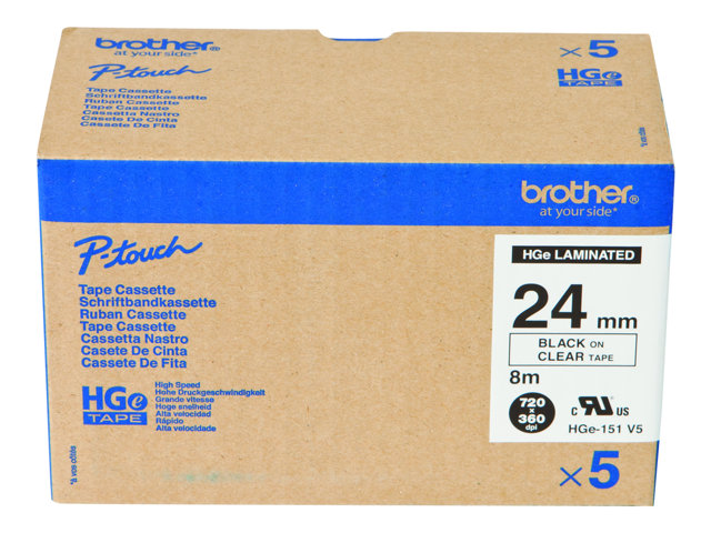 Conçu avec les mêmes caractéristiques que le ruban standard laminé TZ, ce ruban HGe-151V5 noir sur transparent a été rigoureusement testé par l'équipe Brother pour être aussi durable et fiable que possible.