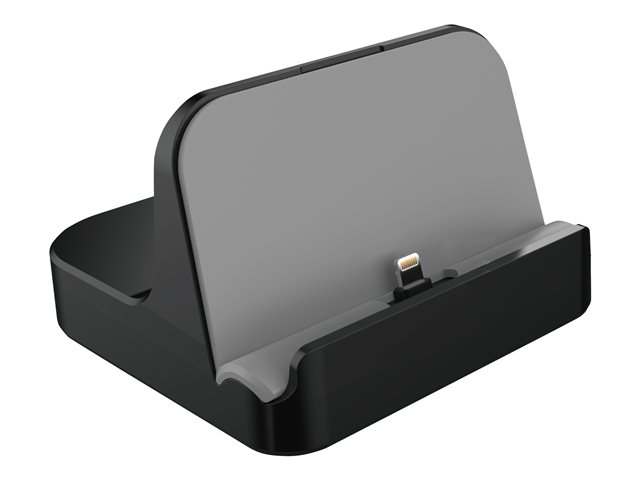 Support de charge et synchronisation pour Apple iPad et iPhone en Lightning. Inclinaison réglable. Compatible tablettes et smartphones Apple avec connecteur Lightning avec ou sans coque de protection.