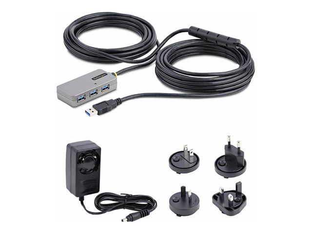 StarTech.com USB Extender Hub, 10m USB 3.0 Extension Cable with 4-Port USB Hub, Active/Bus Powered USB Repeater Cable, Optional 20W Power Supply Included