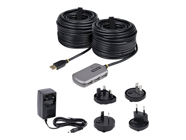 StarTech.com USB Extender Hub, 24m USB 2.0 Extension Cable with 4-Port USB Hub, Active/Bus Powered USB Repeater Cable, Optional 10W Power Supply Included
