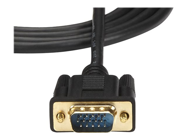 Le câble convertisseur HD2VGAMM3 offre une connexion de 91 cm précise, qui élimine les enchevêtrements dus à la longueur des câbles et assure une installation nette et professionnelle. Pour les installations plus longues, nous offrons également un [%product id="HD2VGAMM6" text="câble HDMI vers VGA de 1,8 m"%] [%product id="HD2VGAMM6" text="(HD2VGAMM6)"%] et un [%product id="HD2VGAMM10" text="câble HDMI vers VGA de 3 m"%] [%product id="HD2VGAMM10" text="(HD2VGAMM10)"%], ce qui vous permet de choisir la bonne longueur de câble selon vos installations.