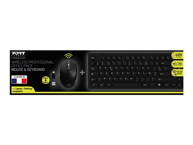 PORT Connect Professional Office Pack - Ensemble clavier et souris - sans fil - 2.4 GHz - AZERTY - Français