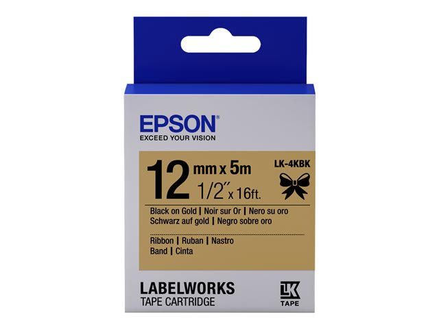 Epson LabelWorks LK-4KBK - Noir sur or - Rouleau (1,2 cm x 5 m) 1 cassette(s) bande d'étiquettes - pour LabelWorks LW-1000, 300, 400, 600, 700, 900, K400, Z5000, Z5010, Z700, Z710, Z900