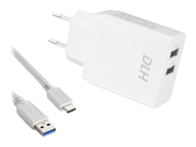 DLH DY-AU2552W - Adaptateur secteur - 12 Watt - 2.4 A - 2 connecteurs de sortie (USB) - sur le câble : USB-C - blanc