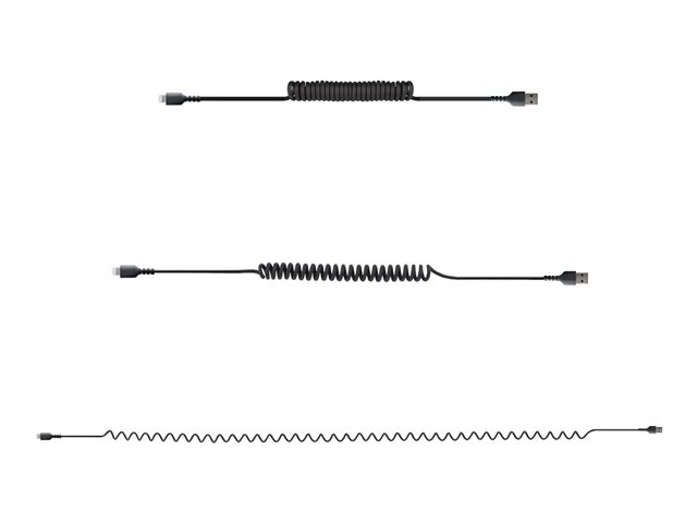 StarTech.com Câble USB vers Lightning de 1m - Certifié Mfi - Adaptateur USB Lightning Noir, Gaine en TPE - Cordon Chargeur Iphone/Lightning Spiralé en Fibre Aramide Très Résistant (RUSB2ALT1MBC) - Câble Lightning - USB mâle pour Lightning mâle - 1 m - noir - bobiné