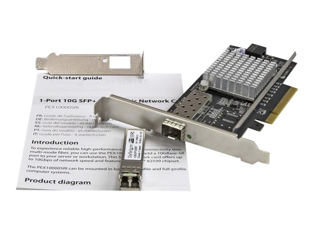 StarTech.com Carte réseau PCI Express à 1 port fibre optique 10 Gigabit Ethernet SFP+ ouvert - Chipset Intel - Adaptateur NIC PCIe - MM - Adaptateur réseau - PCIe x8 - 10GbE - 10GBase-SR - noir - avec module transmetteur 10GBase-SR SFP+ - pour P/N: BNDTB10GI, BNDTB210GSFP, BNDTB310GNDP, BNDTB410GSFP, BNDTB4M2E1, BNDTBUSB3142 PEX10000SRI