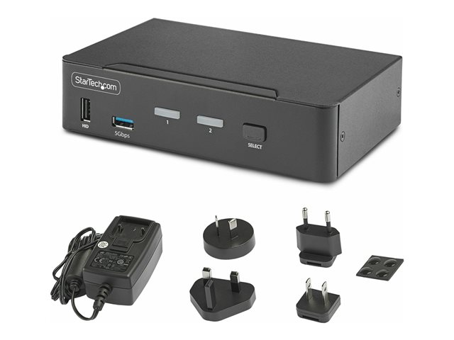 StarTech.com 2-Port DisplayPort KVM Switch, 8K 60Hz / 4K 144Hz, Single Display, DP 1.4, 2x USB 3.0 Ports, 4x USB 2.0 HID Ports, Push-Button & Hotkey Switching, TAA Compliant - OS Independent, Metal Housing (D86A2-2-PORT-8K-KVM) - Commutateur écran-clavier-souris/audio/USB - 2 x KVM / audio / USB - 1 utilisateur local - de bureau - Conformité TAA