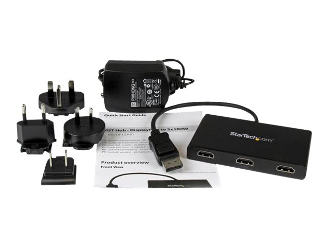 StarTech.com 3-Port Multi Monitor Adapter, DisplayPort 1.2 to HDMI MST Hub, Triple 1080p HDMI Monitor, Video Splitter for Extended Desktop Mode on Windows PCs Only, DP to 3x HDMI MST Hub - Multi Stream Transport (MSTDP123HD) - Répartiteur vidéo/audio - 3 x HDMI - de bureau - AC 100/240 V