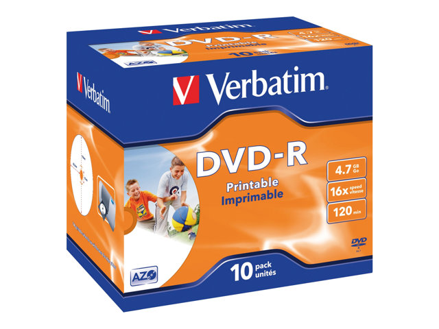 Verbatim - 10 x DVD-R - 4.7 Go 16x - surface imprimable photo large - boîtier CD 43521